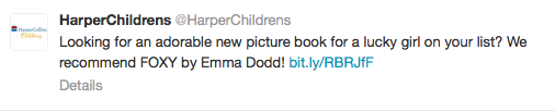 So then today I was reading my twitter feed (as one does) and I came across this innocuous tweet from @HarperChildrens (a publisher I greatly admire), about the darling new book FOXY: